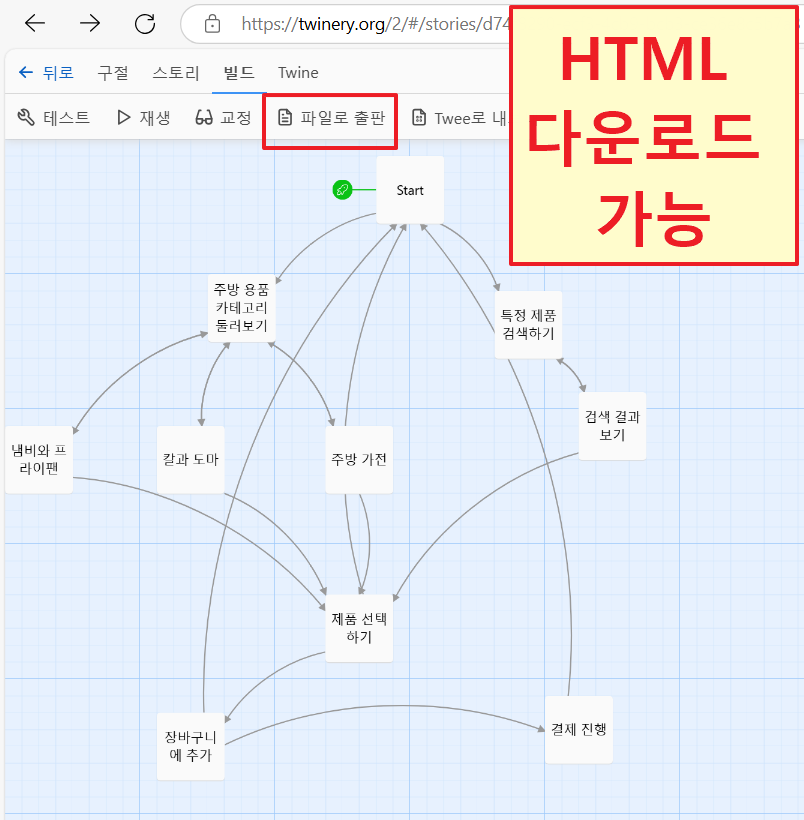 HTML 다운로드가 가능하여 작성한 스토리를 손쉽게 공유할 수 있다.